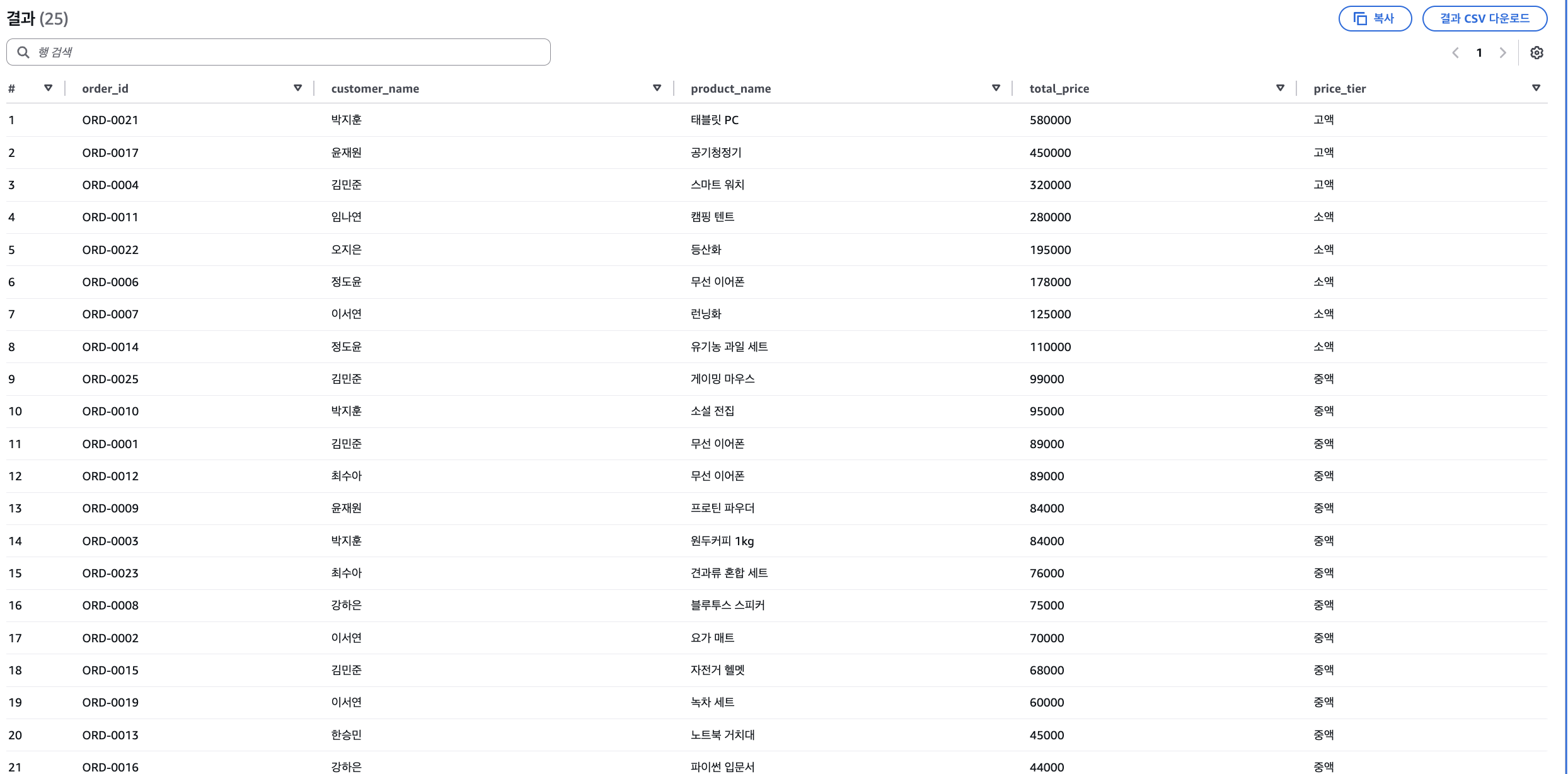 마지막으로, 주문 금액 구간별로 분류하는 쿼리를 실행해보겠습니다.