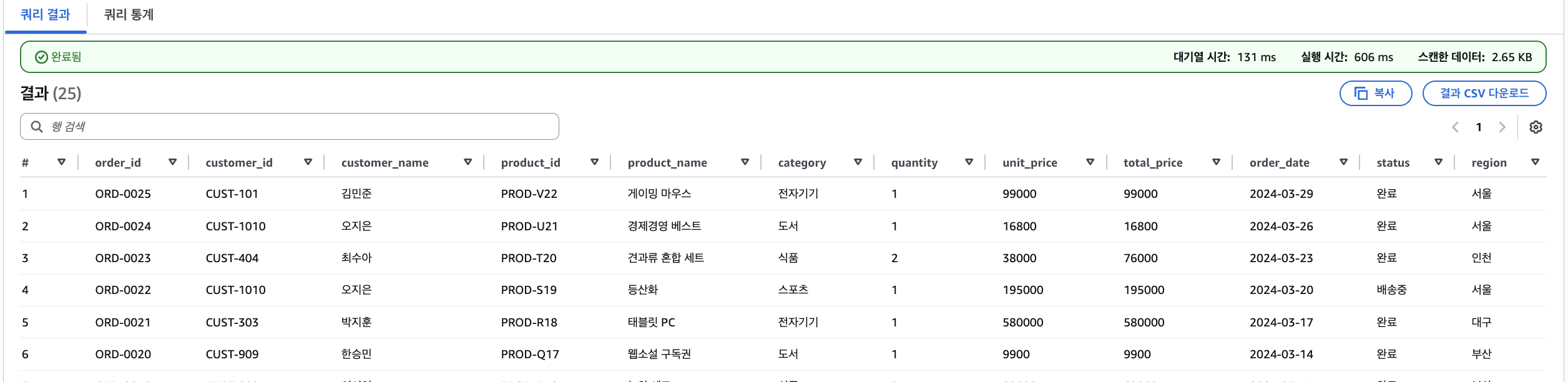 Athena를 처음 접하시는 분들이라면, 이번 예제를 직접 따라 해보면서 “파일을 올리고 바로 SQL로 분석한다”는 흐름에 익숙해지는 것만으로도 큰 도움이 될 것입니다.